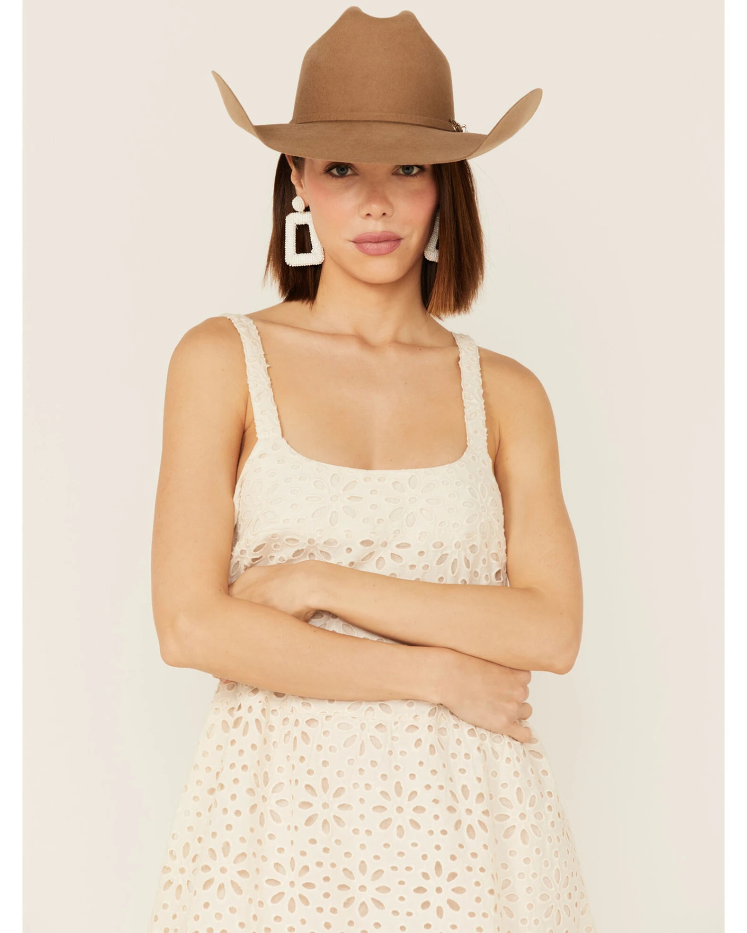 - Eyelet lace overlay