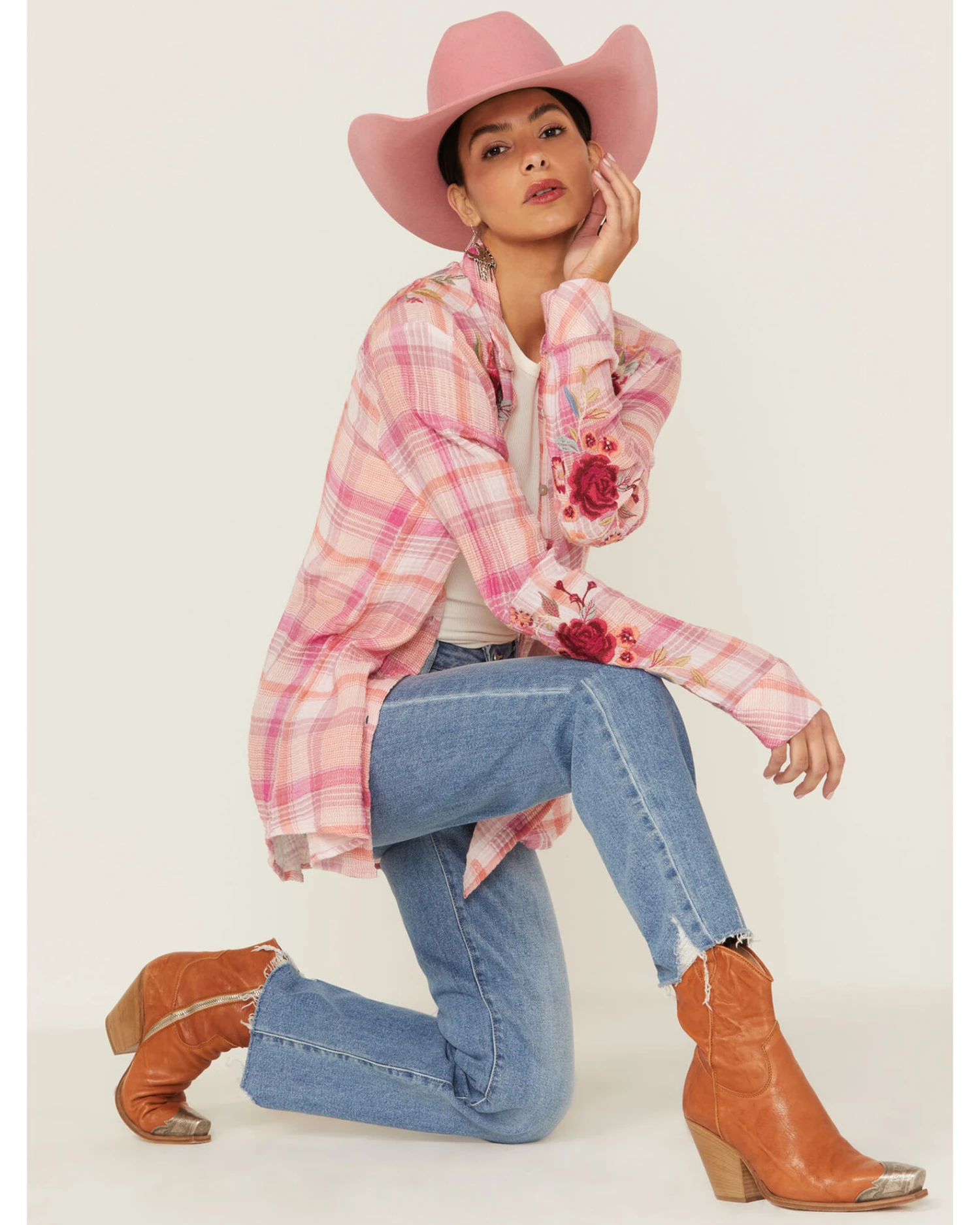 Johnny Was Women’s Sonya Plaid Embroidered Floral Long Sleeve Shirt