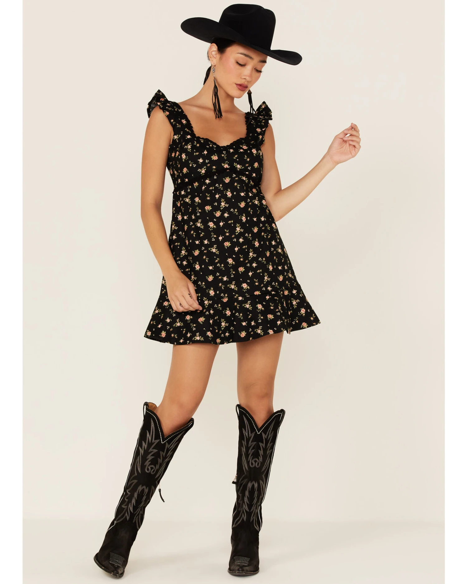 - Black floral print