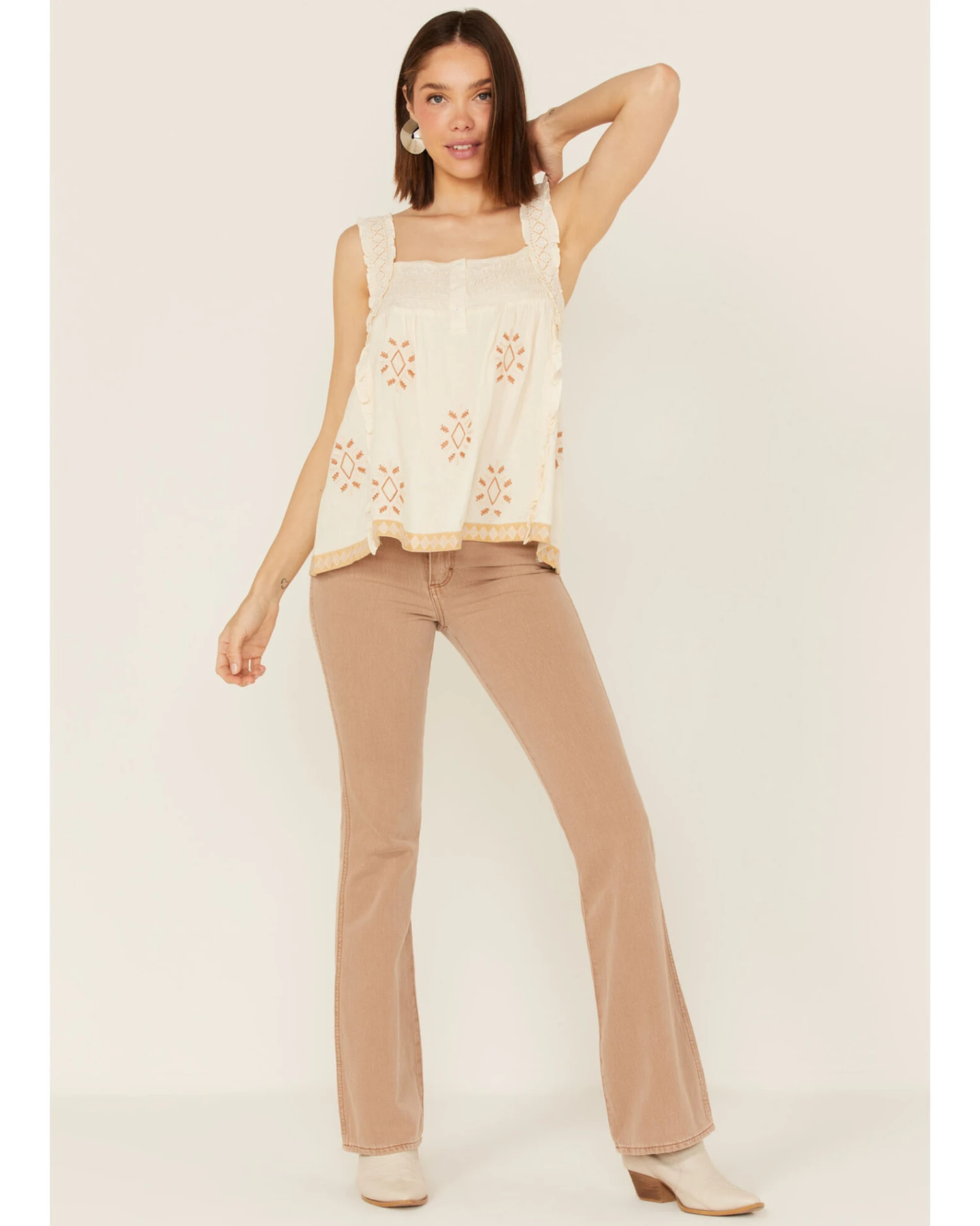 Miss Me Women’s Southwestern Embroidered Ruffle Tank Top