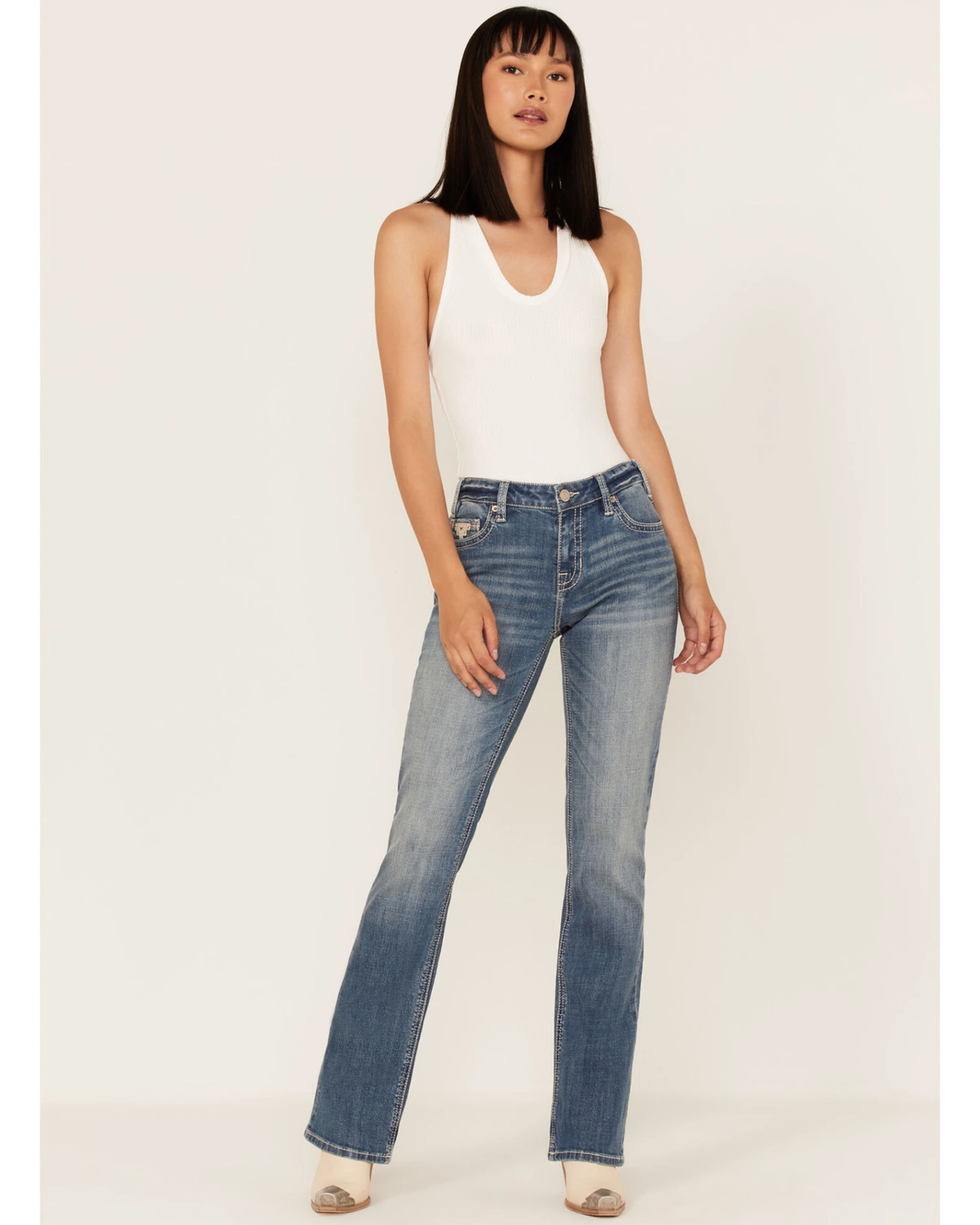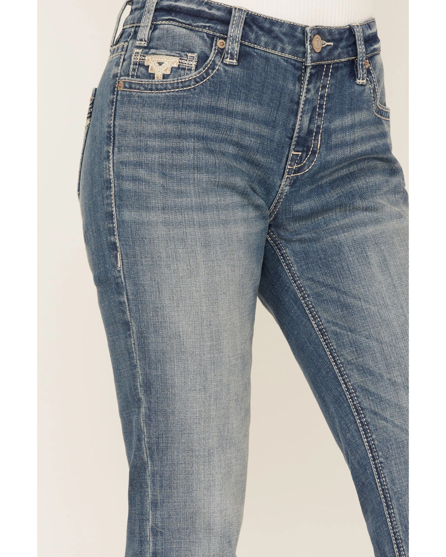 - Five-pocket design with Southwestern embroidery details