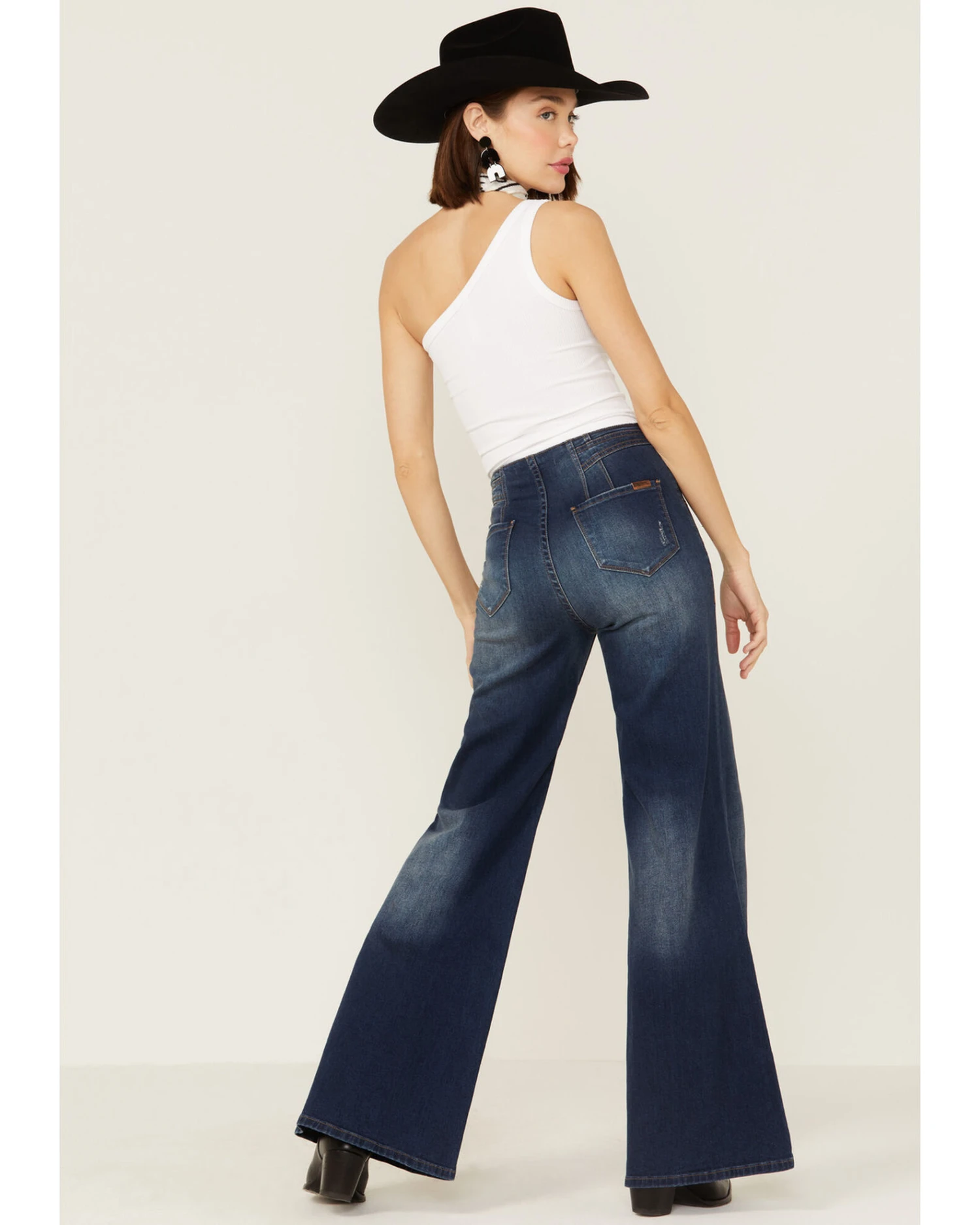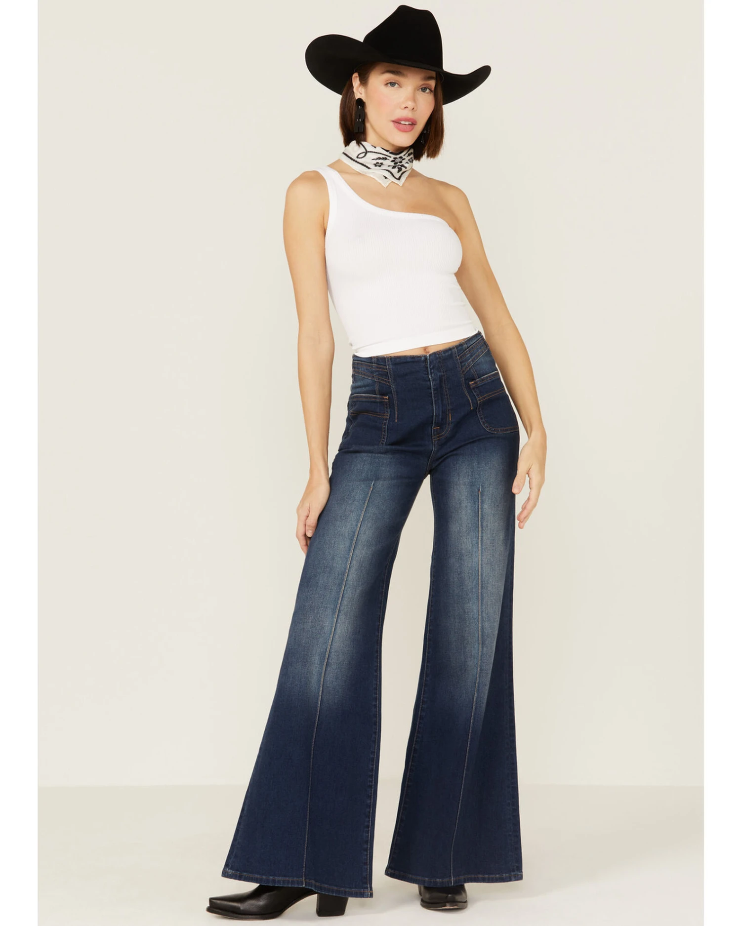 Rock & Roll Denim Women’s Palazzo Seamed Front Flare Jeans