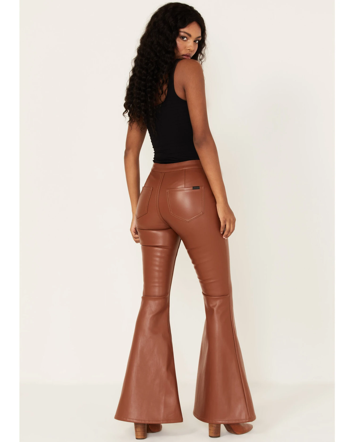 Rock & Roll Denim Women’s Pleather High Rise Flare Jeans