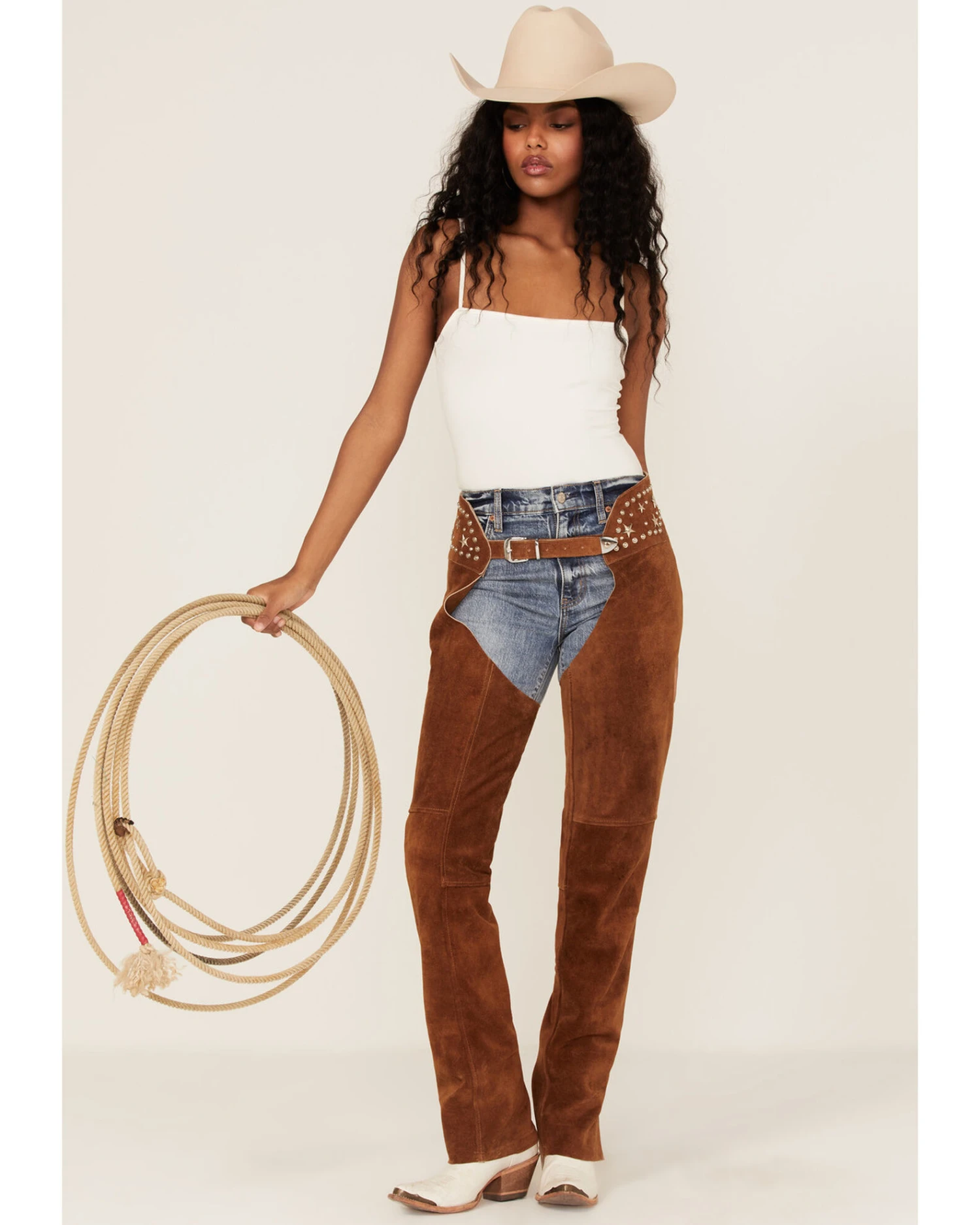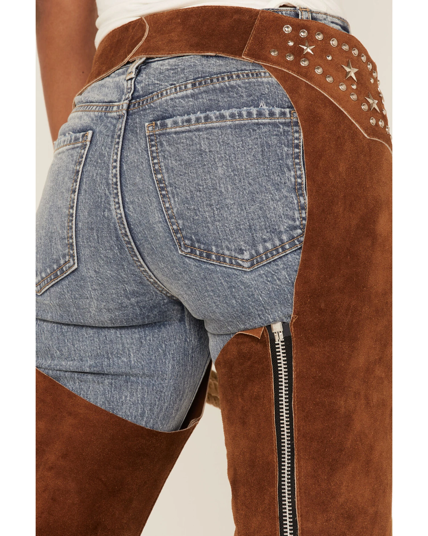 Understated Leather Women’s Studded Suede Paris Texas Chaps