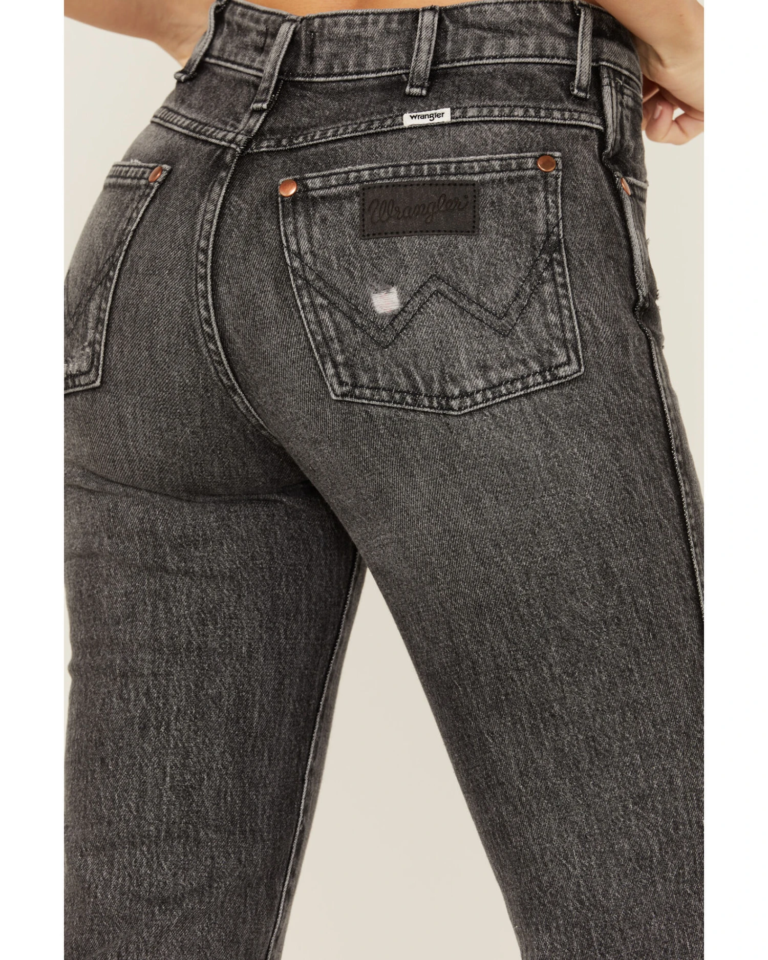 Wrangler Women’s Dark Wash High Rise Distressed Wild West Straight Jeans